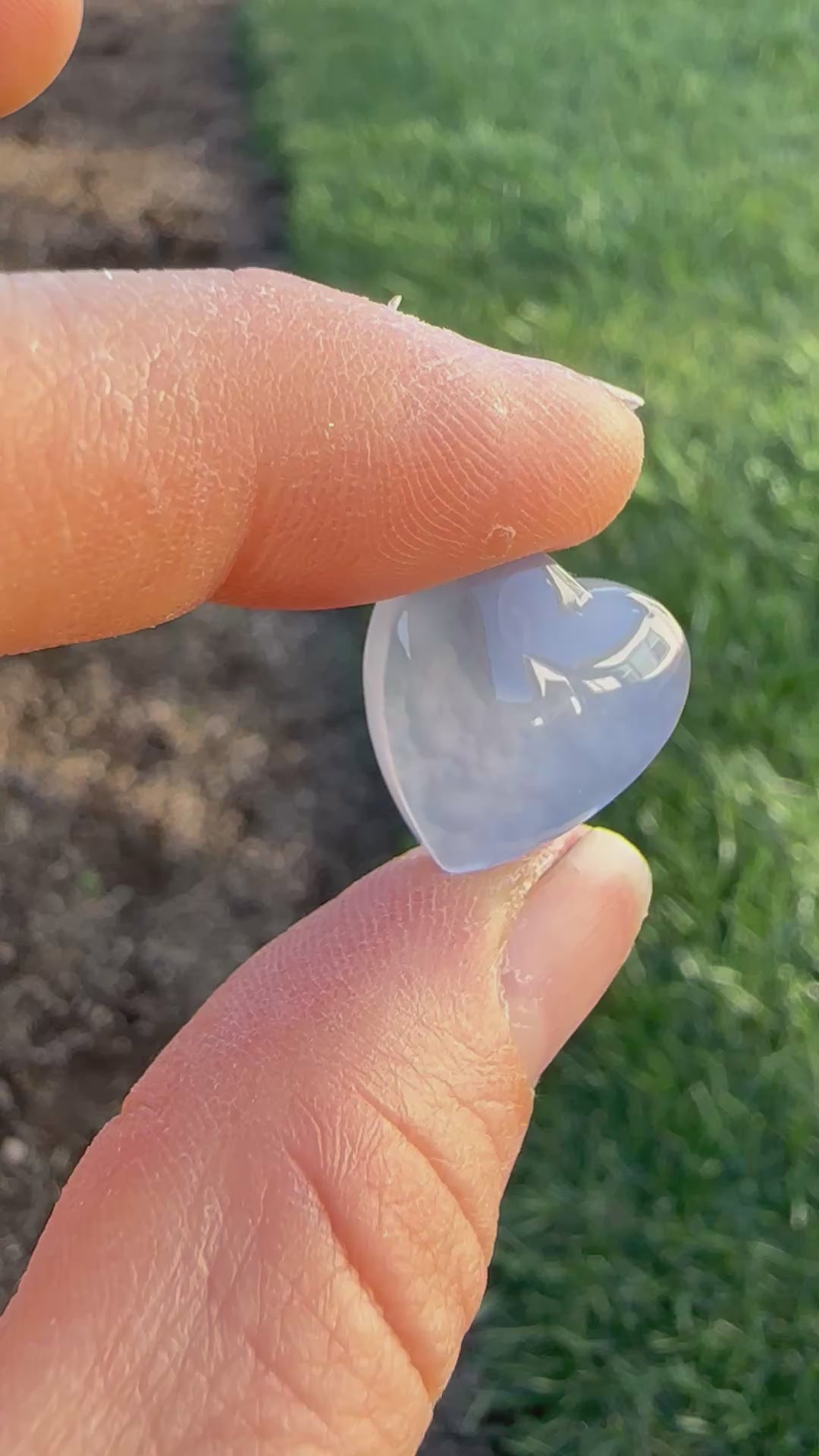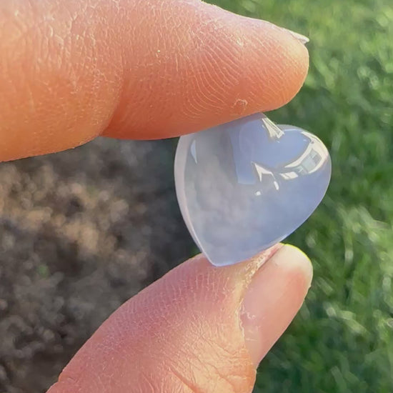If I’m being honest, I don’t know much about this material other than it coming from a river bed in Ethiopia and I don’t see it out there on the market. The stone has an incredible juicy, gemmy, glowy periwinkle tone and a botryoidal pattern hidden within the cut. Multiple photos and a video shown in outdoor and indoor lighting to try and capture all colors and patterns within the rock. Stone back is polished and beveled for versatile and easy setting.