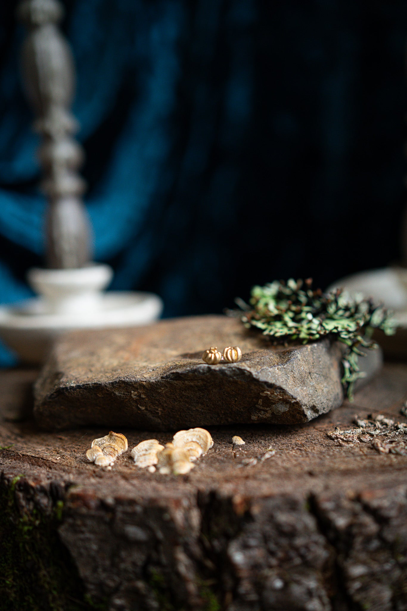 Pumpkins are made from brass with sterling silver post studs and sterling backs.