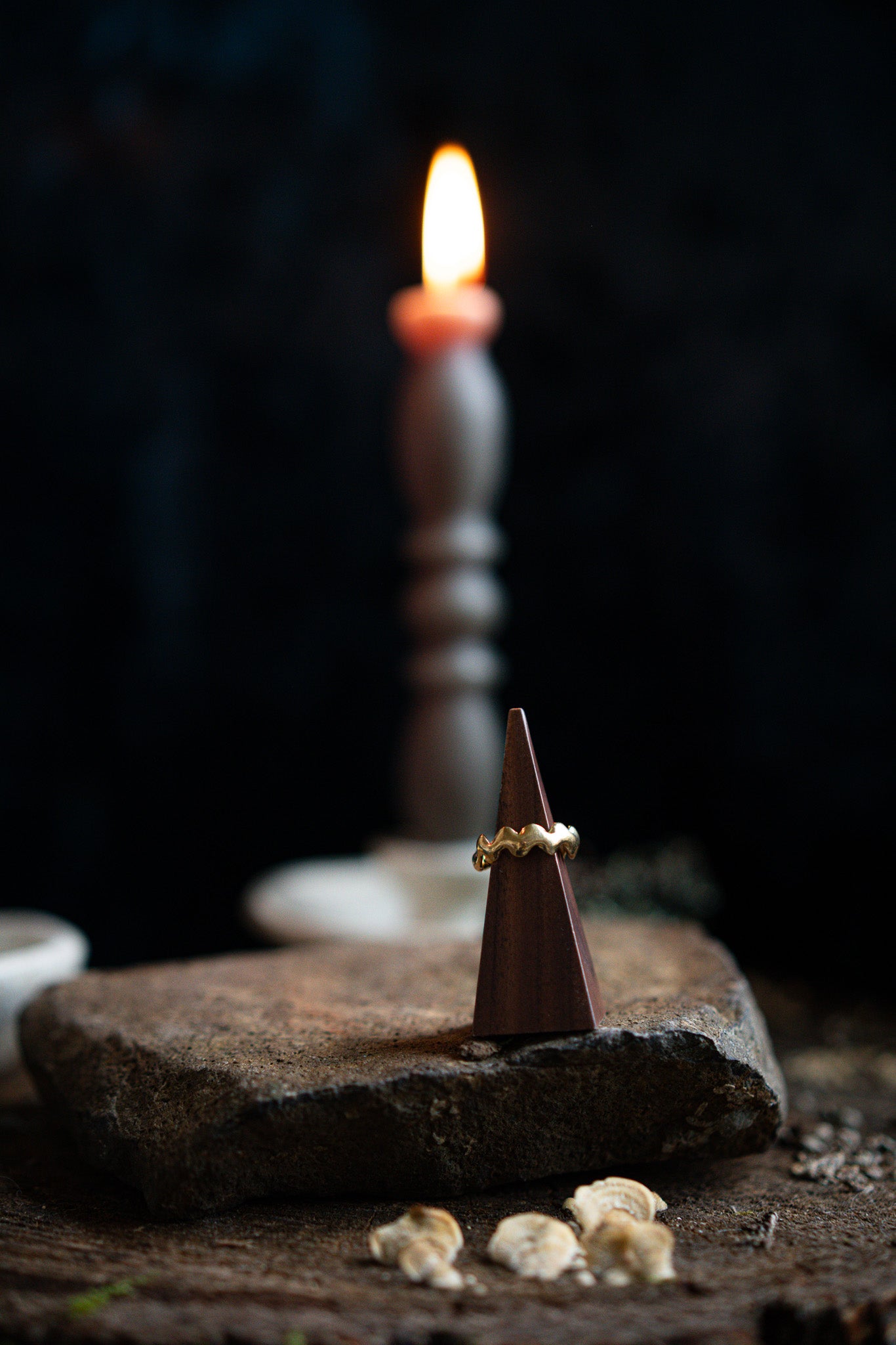 -These rings are irregular shapes and widths. Letting the wax flow where it wants to makes the rings have some sides that are thicker than others. Nothing about the shape is repeated so you'll see a different looking ring as it turns with some areas being thicker in depth and height than others. This gives the ring a very organic and wild nature. Some peaks of the ring may be on the sharper side and care should be taken when wearing and removing rings.